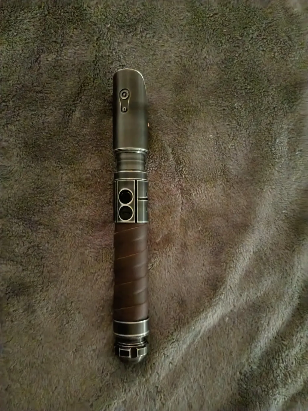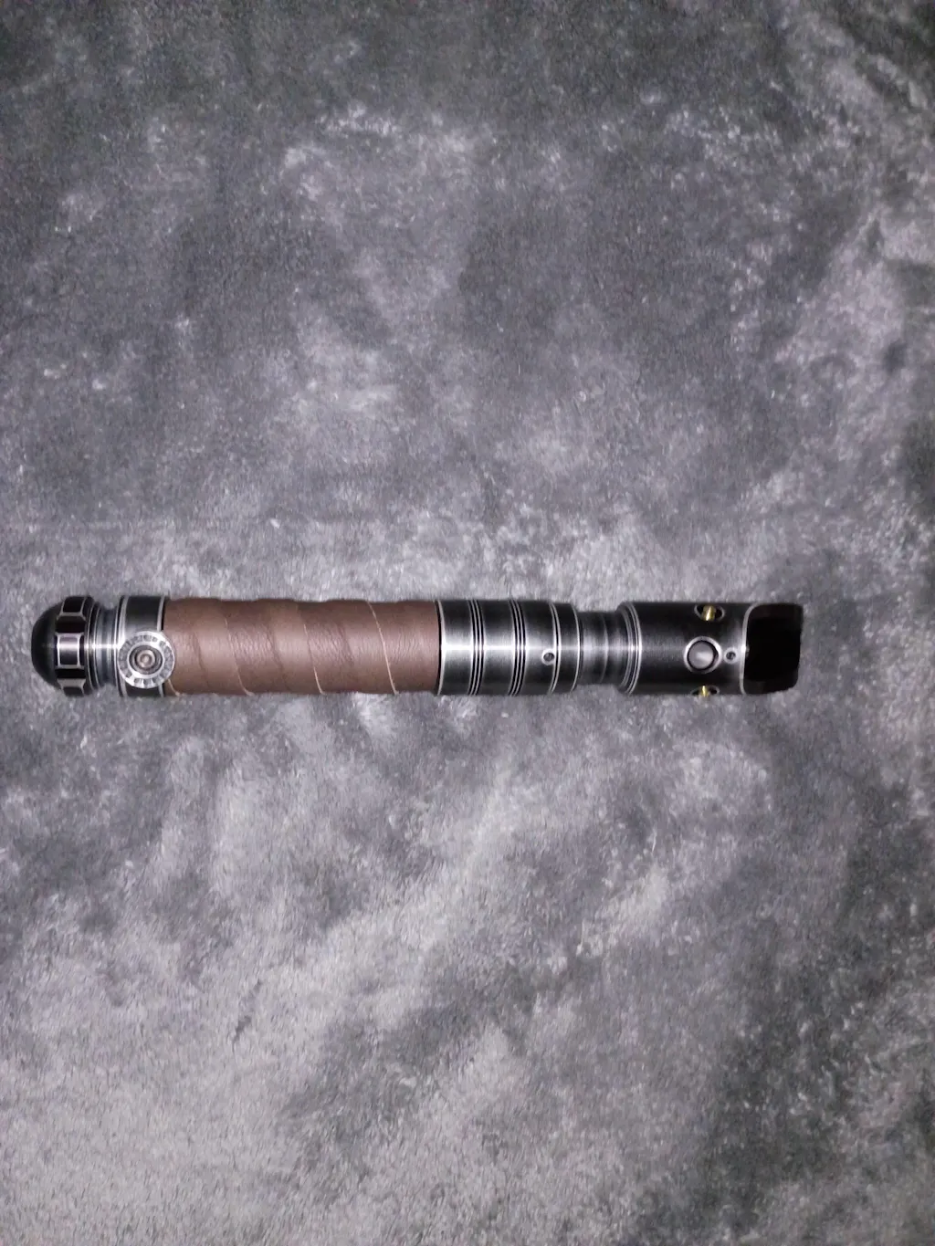 The Defiant Mk2 takes design inspiration from the Graflex with an S curve style emitter, brass pins, glass eye, and switch section. For improved ergonomics, it has a leather-wrapped body with a new more detailed pommel inspired by the avenger. This is the perfect saber for a warrior of light or a new disciple of the night.